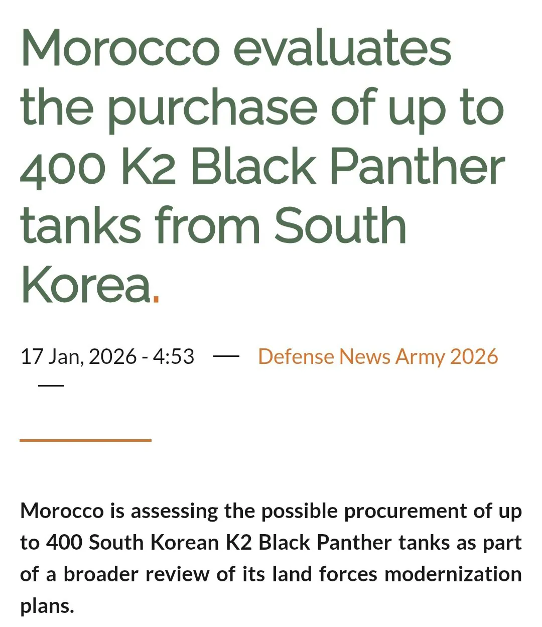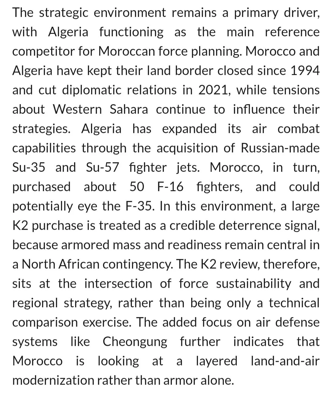 북아프리카의 사막국가 모로코에서 한국산 천궁 중거리 지대공미사일 및 전차 400대등 K-방산을 구매를 고려중이랍니다 일단 근본적인 원인은 잡화점도 아니고 탱크 종류가 완전게많아서 문제라 저거 현대화 작업 들어갔구요 정치적인 이유로는 서사하라 영토 이슈로 앙숙인 알제리가 군비증강 들어갔다는 소식이 모로코한테 전해졌다고합니다 이번에 잘풀리면 아프리카에서도 K방산 활로 뚫을수도? 29년 전 오늘, 대한민국에서 발생한 사건피부과 의사가 일부러 7일간 피부를 망치면 생기는 일옆나라 바둑 1인자가 한국 1인자에게 훈수 둔 썰영국에서 공무원급으로 힘들다는 시험미국에서 꾸준히 팔린다는 살균 미처리 우유