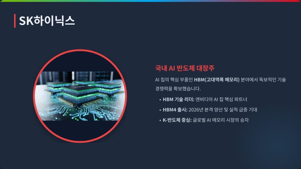3️⃣ SK하이닉스: K-반도체 대표주이자 AI 반도체 핵심 공급자