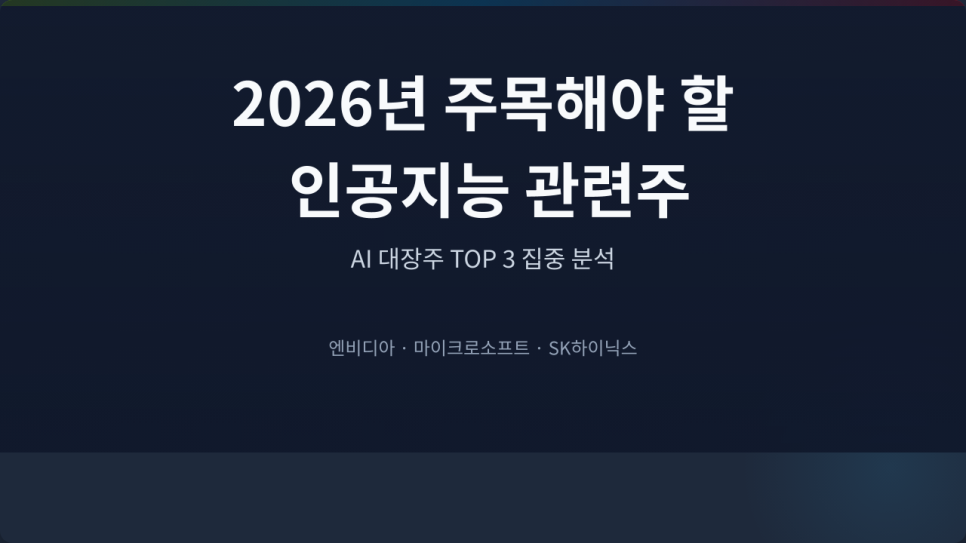 AI 대장주 TOP3 (엔비디아·마이크로소프트·SK하이닉스)를 정리해 드립니다.