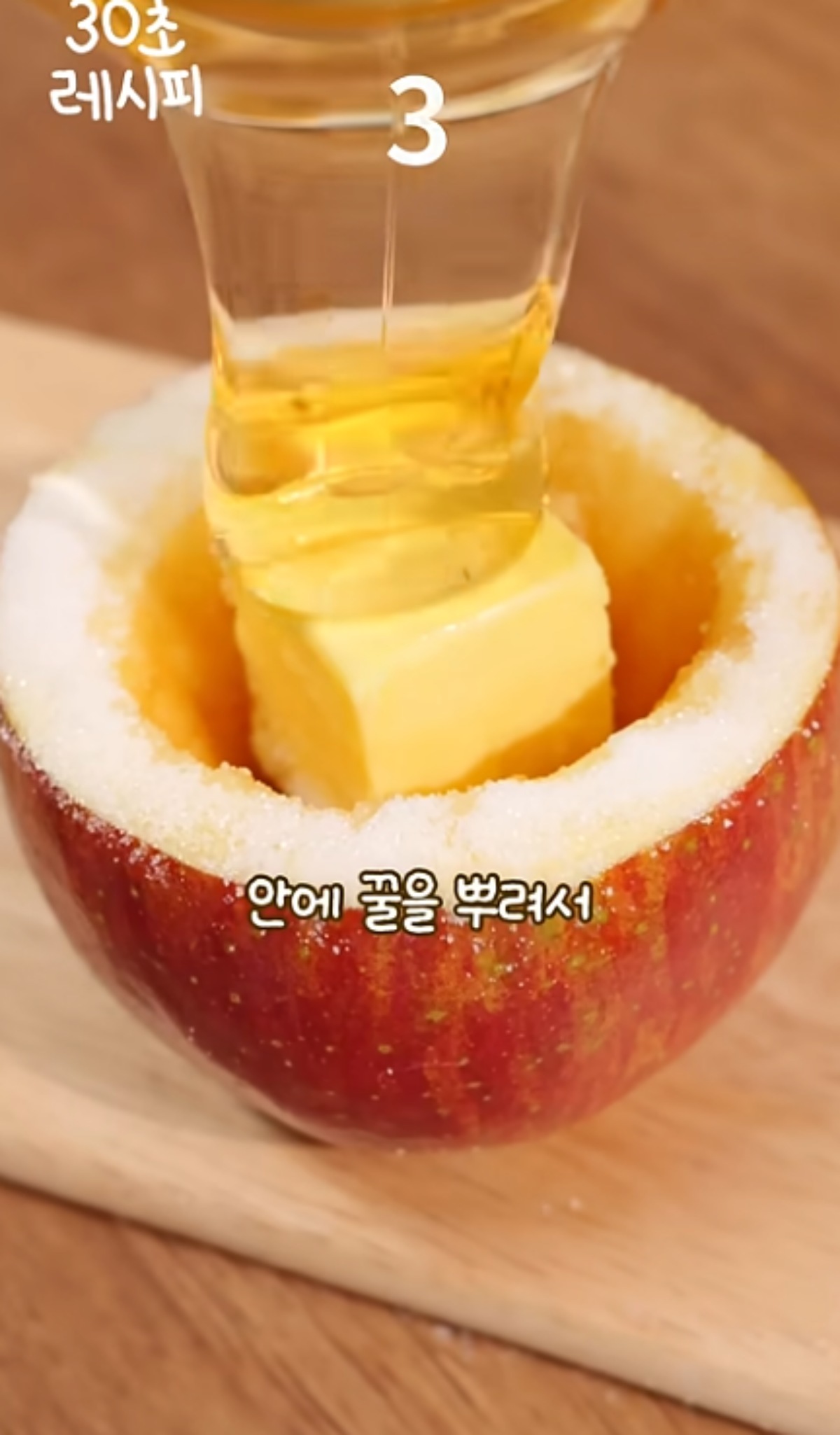 유튜브 '지현쿡'에 따르면, 레시피는 다음과 같다. 먼저 깨끗하게 씻은 사과의 윗면을 자르고 심지를 조심스럽게 파낸다. 그 안에 설탕 1스푼과 버터 한 조각을 넣고, 잘라낸 윗면에도 버터를 바르고 설탕을 솔솔 뿌려준다. 마지막으로 파낸 심지 안에 꿀을 가득 채운 뒤, 에어프라이어 180도에서 15~20분 정도 구워주면 완성된다. 부드러우면서도 달콤한 사과의 색다른 맛을 즐길 수 있다.