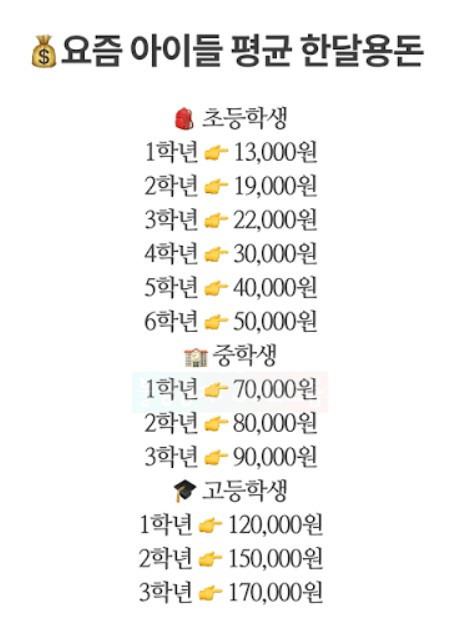 요즘 아이들 용돈 수준