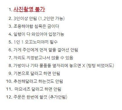 인데 가게의 규칙이 아래 짤과 같이 많이 까다롭습니다