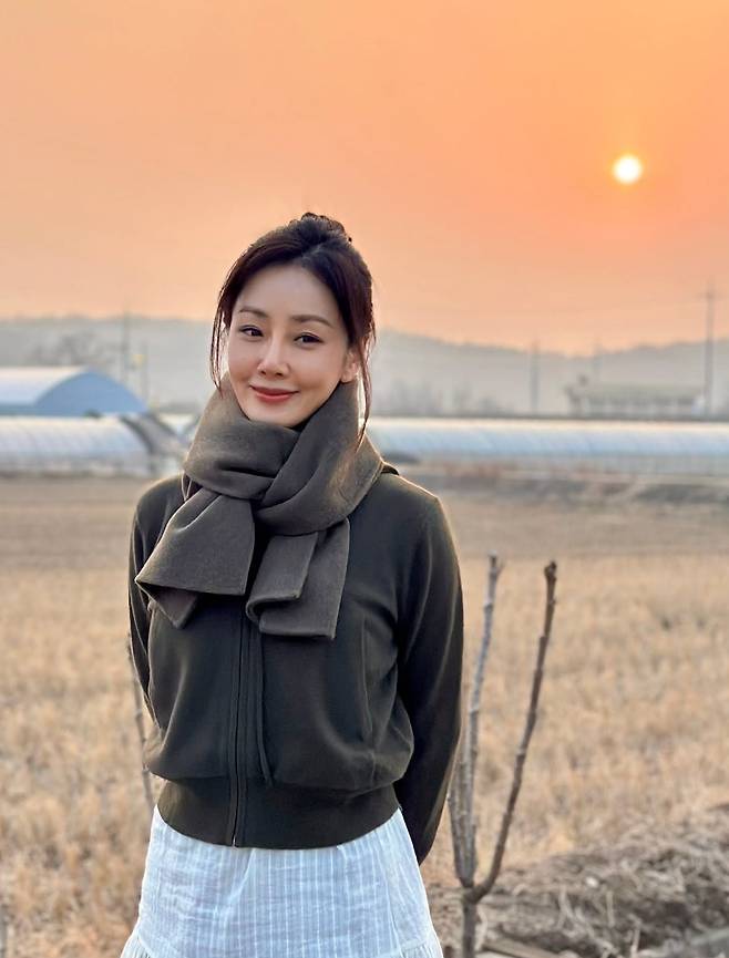 오나라가 해 질 녘 노을이 아름답게 물든 들판을 배경으로, 보기만 해도 마음이 따뜻해지는 우아한 근황을 전했어요.