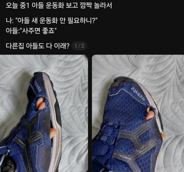 중1 아들 운동화 상태에 깜짝 놀란 엄마