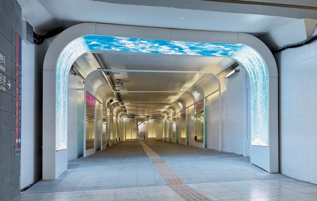 '어번캔버스' 사업을 통해 지하횡단보도 진입부에 미디어 게이트가 설치되고, 배경 음악이 송출되는 등 특유의 폐쇄감이 완화됐다. 또 안내 체계가 직관적으로 정비되면서 접근성이 높아졌다. 내부는 다이크로익(dichroic) 필름을 활용해 시점에 따라 달라지는 시각적 재미를 제공한다.