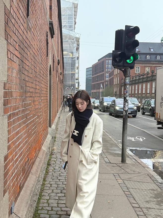 사진 속 권은비는 깔끔하게 떨어지는 화이트 롱코트에 샤넬 로고가 포인트로 들어간 블랙 머플러를 매치해, 단정하면서도 고급스러운 '블랙 앤 화이트' 룩을 완성했는데요.