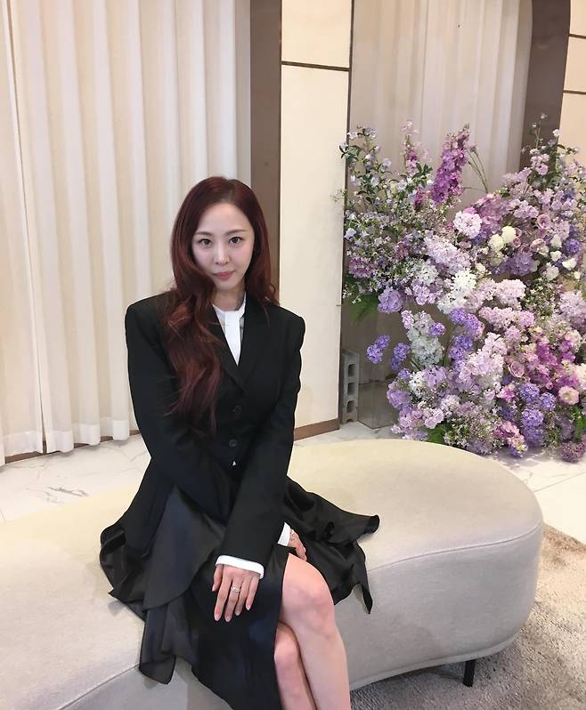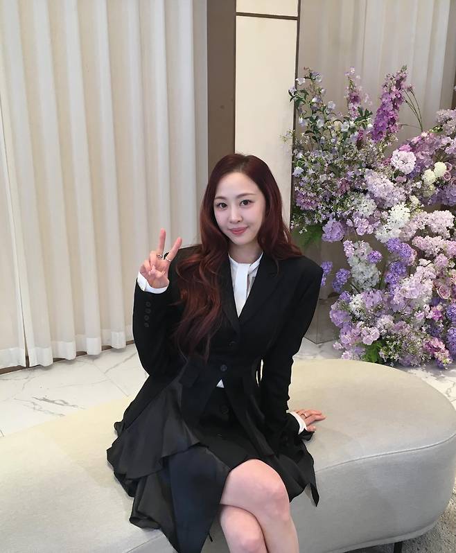 다솜이 보랏빛과 분홍빛 꽃들이 가득한 화사한 공간을 배경으로, 그녀만의 우아하고 고혹적인 매력이 돋보이는 근황을 전했어요.