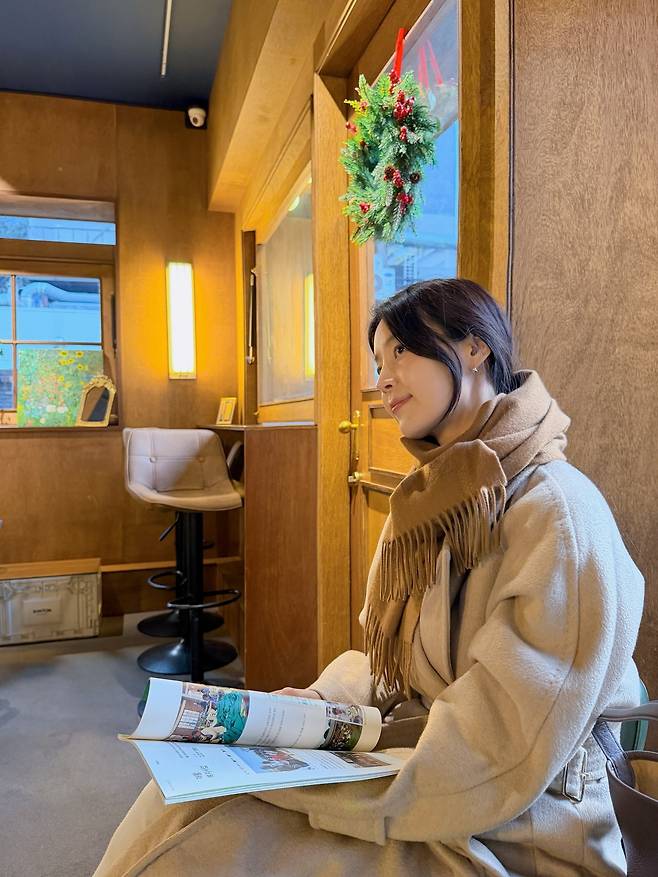 한지혜가 붉은 열매가 달린 크리스마스 리스가 걸린 이국적인 분위기의 카페를 배경으로, 그녀만의 단아하고 우아한 매력이 돋보이는 근황을 전했어요. 사진 속 한지혜는 부드러운 베이지 컬러의 롱 코트에 차분한 브라운 톤의 머플러를 정갈하게 둘러, 보기만 해도 마음이 편안해지는 '톤온톤' 겨울 스타일링을 보여주고 있는데요. 수줍게 미소 지으며 아래를 응시하는 모습과 카페의 나무 질감 인테리어가 어우러져 한 편의 서정적인 영화 포스터 같은 분위기를 자아내고 있어요.