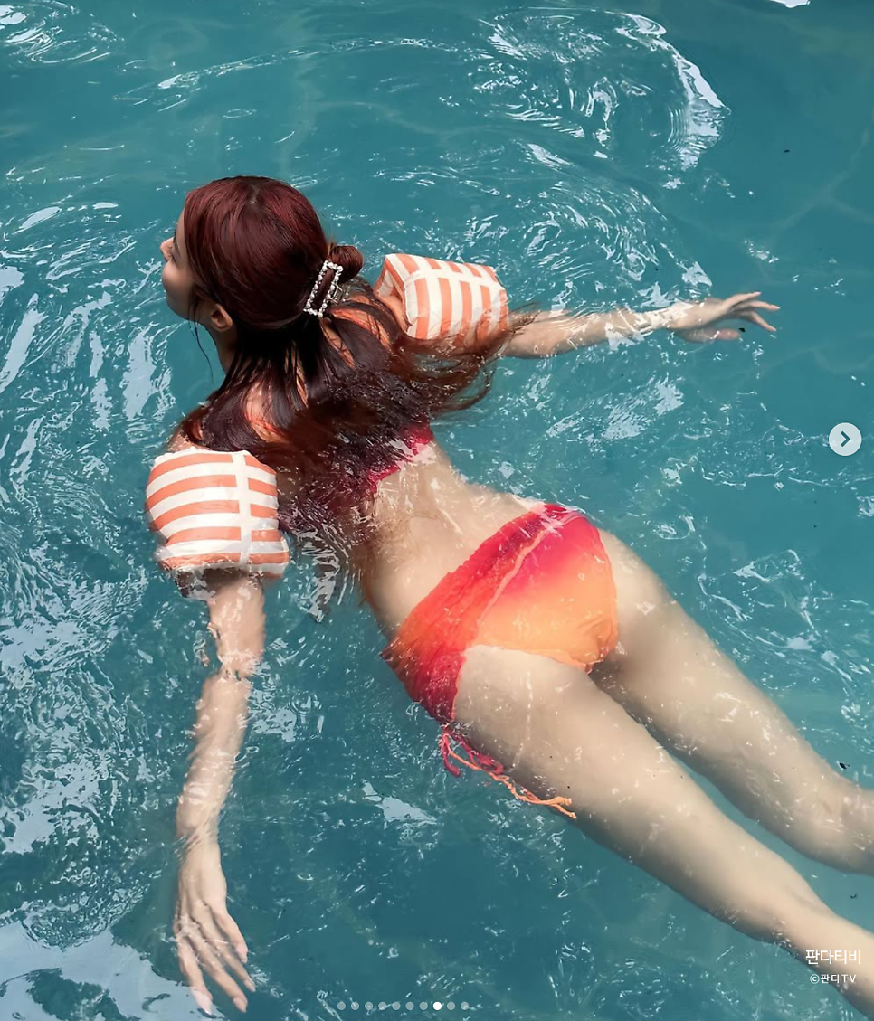 또 다른 룩에서는 헤어 컬러와 맞춘 상큼한 오렌지 비키니로 청량감 넘치는 매력을 뽐냈는데요!