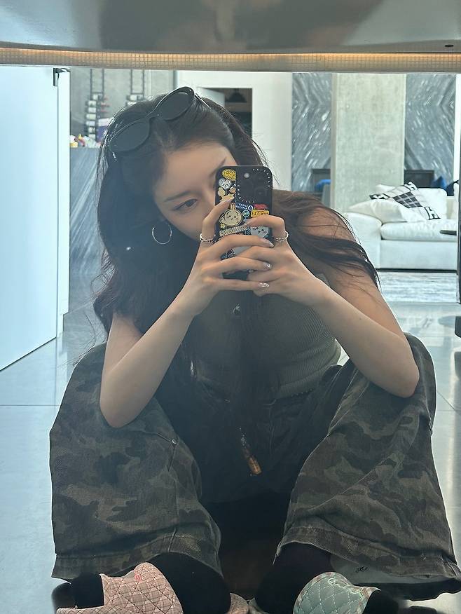 사진 속 지연은 와이드한 핏의 카모플라쥬 카고 팬츠를 완벽하게 소화하며 독보적인 '멋쁨' 매력을 발산하고 있는데요.