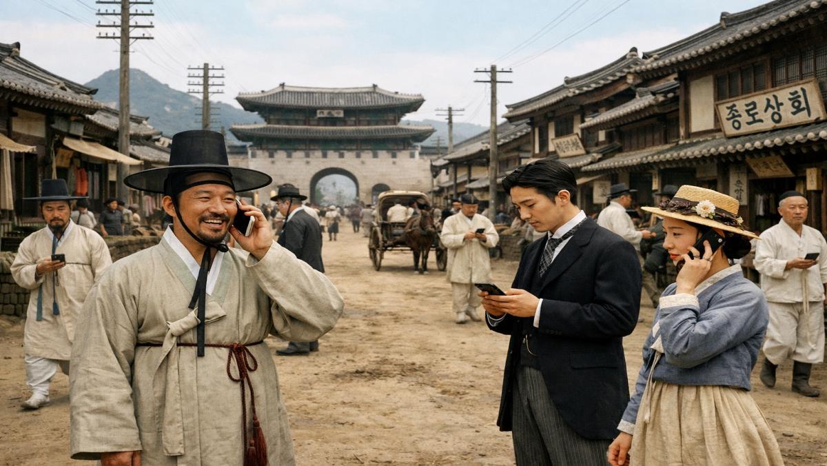 ‘개화기 전신주 아래서 스마트폰을?’…광화문 한복판 '타임머신'의 정체