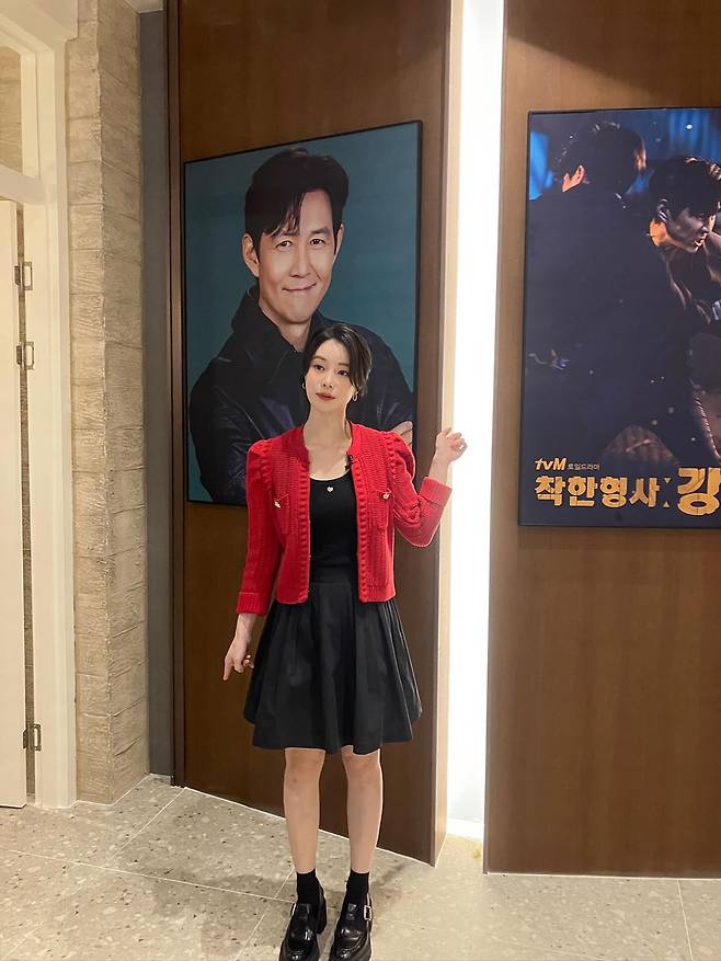 사진 속 임지연은 어깨 라인의 볼륨감이 살아있는 레드 트위드 가디건을 선택해 얼굴빛을 한층 더 환하게 밝혔는데요.
