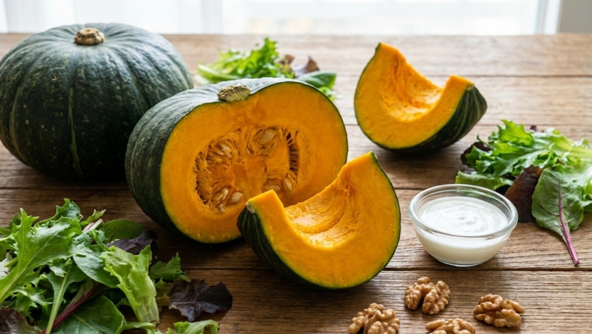 잘 익은 단호박을 반 정도 대충 으깬 후 김을 식혀준다. 식힌 단호박에 옥수수콘 2큰술, 그릭요거트 2큰술, 마요네즈 1큰술, 꿀 1큰술, 소금 1/4 티스푼을 넣은 뒤 골고루 버무려준면 맛있는 단호박 샐러드가 완성된다.