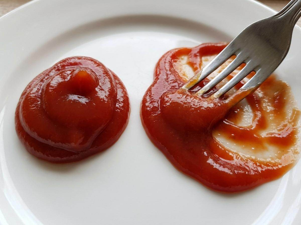 케첩의 물성이 이런 현상을 더 두드러지게 만든다. 케첩은 비뉴턴 유체에 해당한다. 가만히 두면 점도가 높아 거의 고체처럼 보이지만, 힘을 가하면 점도가 급격히 낮아져 잘 흐른다. 병을 흔들거나 두드리면 분리됐던 수분과 토마토 고형분이 다시 섞이면서 우리가 익숙한 농도의 케첩으로 돌아온다.