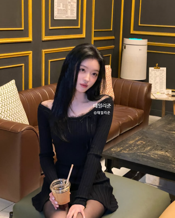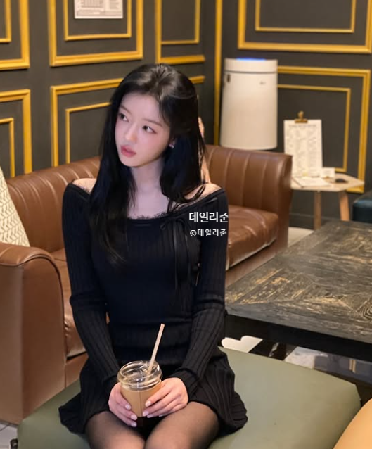 사진 속 블랙 미니 원피스 코디.