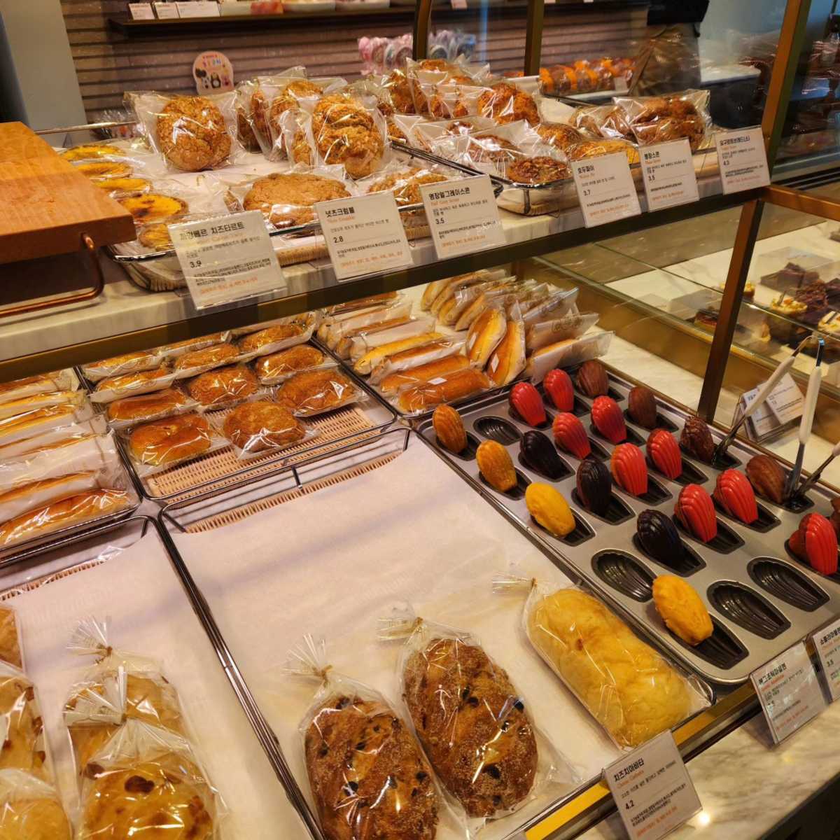 소금빵 2,900원, 명란바게트 5,000원, 모카네오네즈 7,000원