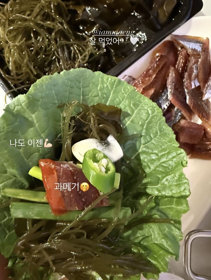 공유된 사진에는 ‘여신’이라는 수식어에 걸맞은 이미지와는 다른 친근한 분위기가 드러난다. 특히 제철 음식 과메기를 직접 즐기는 모습이 공개되면서 소박한 일상이 그대로 전해졌다.