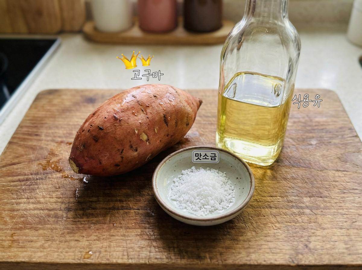고구마스틱의 시작인 재료 준비부터 아주 간단하다. 고구마 1개, 작은 크기라면 2~3개면 충분하다. 여기에 맛소금 2꼬집과 식용유만 있으면 된다. 별도의 전분이나 밀가루를 쓰지 않아 고구마 본연의 단맛과 식감을 살릴 수 있다. 조리 시간도 총 10분 내외로 짧다.