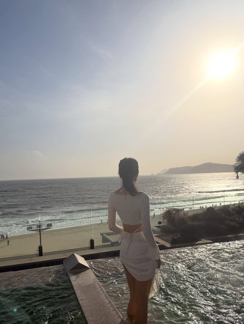 바다를 품은 인피니티 풀화이트 레이스로 완성한 역대급 휴양지 룩