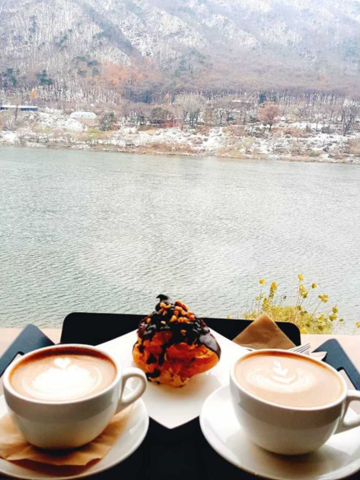 잔잔한 한강과 평화로운 분위기의 산을 모두 즐길 수 있는 남양주 ‘나인블럭뷰 팔당점’. 길게 이어진 창밖으로 흐르는 한강과 함께 시시때때로 변하는 산까지 환상적인 뷰를 감상할 수 있다. 층마다 분위기가 달라 원하는 분위기를 선택해서 즐길 수 있는 것도 장점. 커피는 물론이고 파스타, 피자, 샐러드 등 식사 메뉴까지 먹을 수 있어 데이트하기 딱 좋은 곳이다.