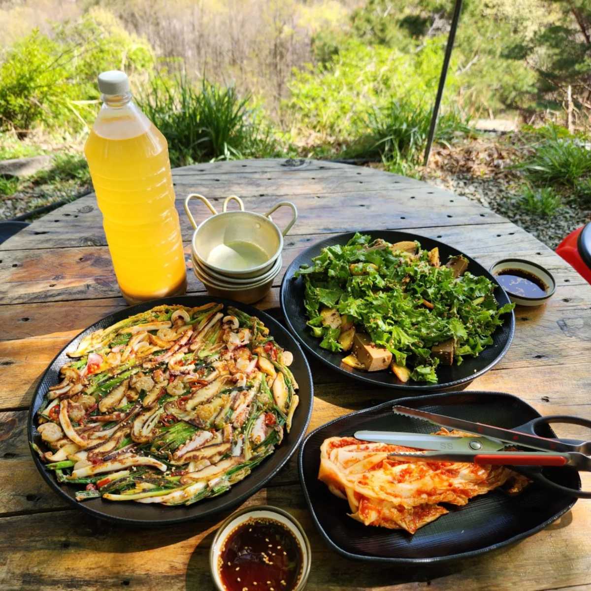 산 중턱에 위치한 야외 식당 밀양 ‘부산집’. 밀양 케이블카가 한눈에 보이는 이 식당은 탁 트인 뷰에 반할 수밖에 없다. 메뉴는 도토리묵, 파전, 더덕구이 등 산에서 먹을 수 있는 음식들 위주로 이루어져 있고 동동주와 칡즙 같은 마실 거리, 칼국수와 잔치국수 등 간단한 식사도 할 수 있다. 도토리묵 무침이 인기 메뉴로 묵과 함께 사과가 들어가 있는데 묵과 사과가 아주 잘 어울린다고. 여기에 밑반찬으로 나오는 김치까지 시원하고 맛있어 국수와 함께 먹으면 궁합이 좋다.