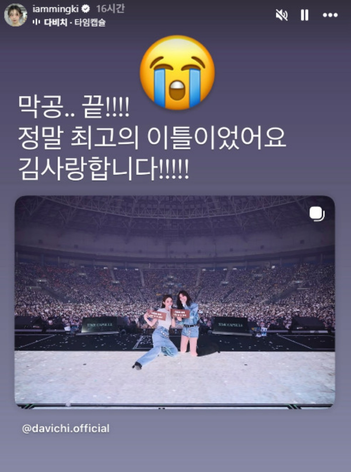 다비치 멤버 강민경은 지난 25일 자신의 인스타그램에 "막공(마지막 공연) 끝. 정말 최고의 이틀이었어요. 사랑합니다"라는 글과 함께 여러 장의 사진을 게재했다.
