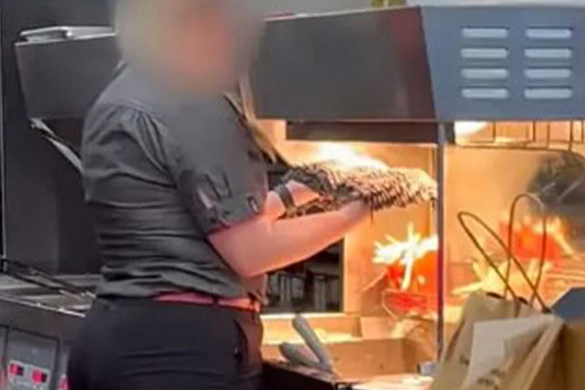 호주의 한 맥도날드 직원이 감자튀김기 앞에서 대걸레를 말리는 모습이 포착돼 논란이 되고 있다.
