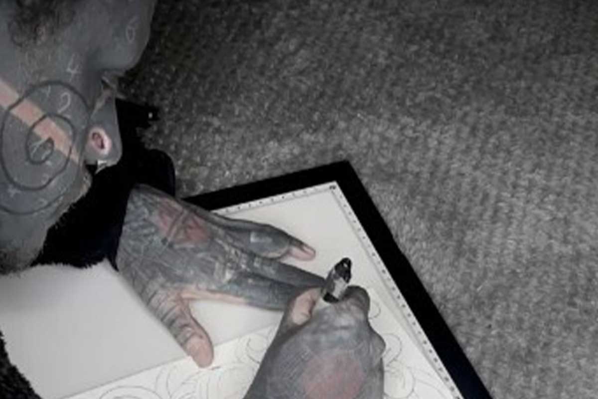 그가 타투를 새기기 시작한 나이는 17살이었으며 현재 팔, 다리뿐만 아니라 가슴을 포함한 모든 신체 부위들을 검은색 타투로 뒤덮었다.