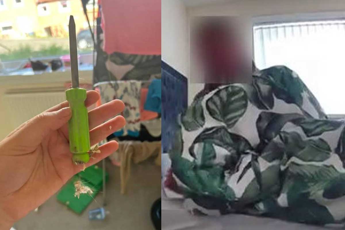 이후 집에 돌아온 케이틀린은 집 거실에서 침입자 남성이 창문을 뚫기 위해 사용한 것으로 추정되는 드라이버를 발견했다.