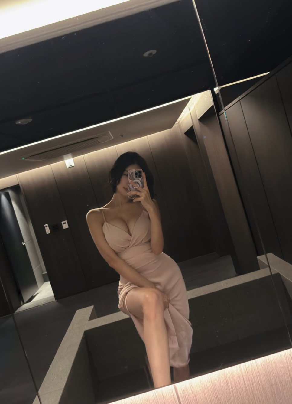 🍷 핑크 실크 드레스+와인, 호텔 룸에서 럭셔리 무드