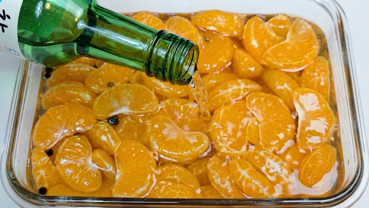 소주는 단순히 풍미를 위한 재료가 아니다. 방부 효과를 내 귤을 장기 보관 가능하게 만드는 결정적 역할을 한다.