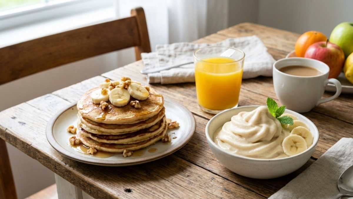 바나나 1개와 계란 2알을 섞어 프라이팬에 굽는 방식이다. 탄수화물 섭취를 극도로 제한하는 키토제닉 식단이나 저탄고지 식단에서 훌륭한 팬케이크 대안이 된다. 바나나의 칼륨 성분은 운동 전 근육의 수축과 이완을 돕는다.