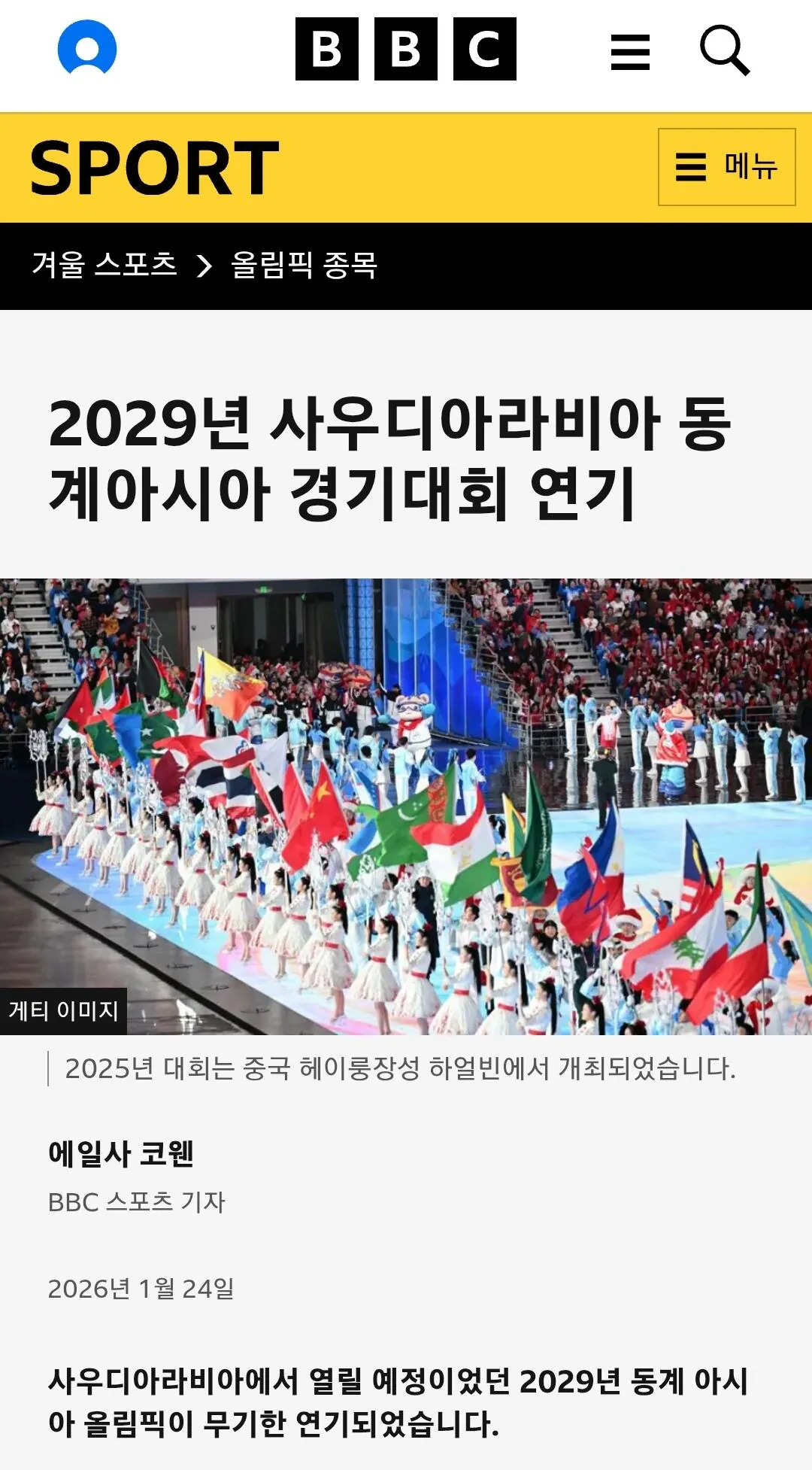 2029년 동계 아시아 올림픽 취소 소식은