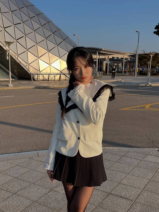 배우 김혜윤이 노을 지는 야외 광장을 배경으로 상큼한 비주얼을 뽐내며 팬들의 마음을 설레게 했어요.