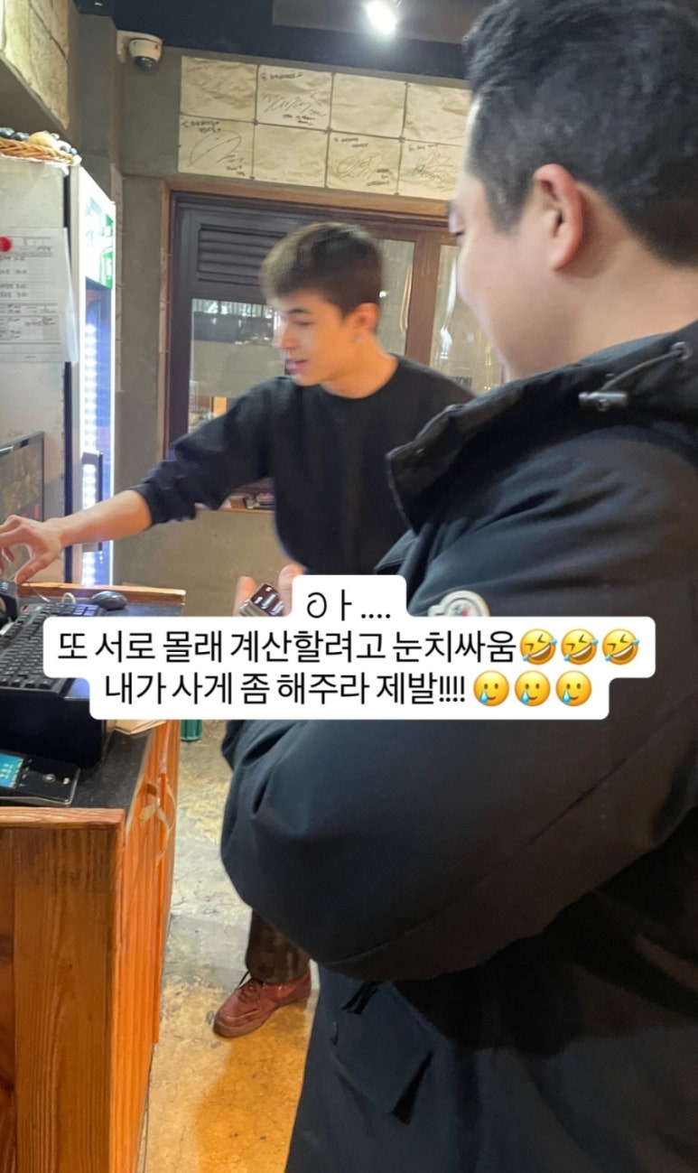 서로 계산하려고 눈치 싸움하는데