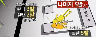 7. 두 병사의 총에서는 지문이 검출되지 않았다고 함. 8. 2~3발 총성이 울렸다는 주민의 증언과는 달리 군이 발견했다고 밝힌 탄피는 모두 7발이었음. 9. 그날 박일병이 갖고나온 총알 15발 중 나머지 5발을 찾지 못했음. 10. 그리고 다음 날 군은 초소 밖에서 4발의 탄피와 실탄 1발을 찾았다고 밝힘. 11. 초소 밖에 있던 박일병이 초소를 향해 4발의 위협 사격을 한 다음에총기 거치대 있는 경계창을 통해 초소 안에 있는