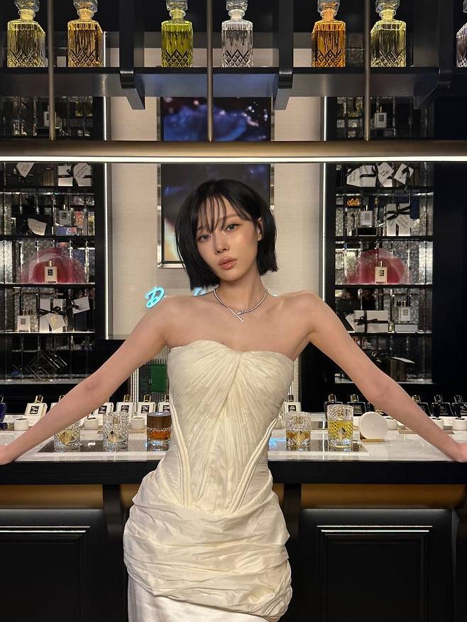 특히 정교하게 잡힌 드레이핑 디테일이 살아있는 튜브톱 드레스는 윈터의 가녀린 직각 어깨와 쇄골 라인을 완벽하게 강조하며 팬들의 감탄을 자아내고 있어요.