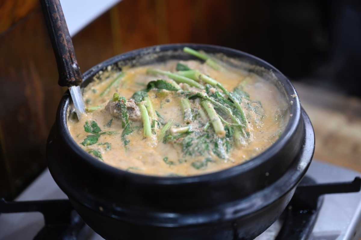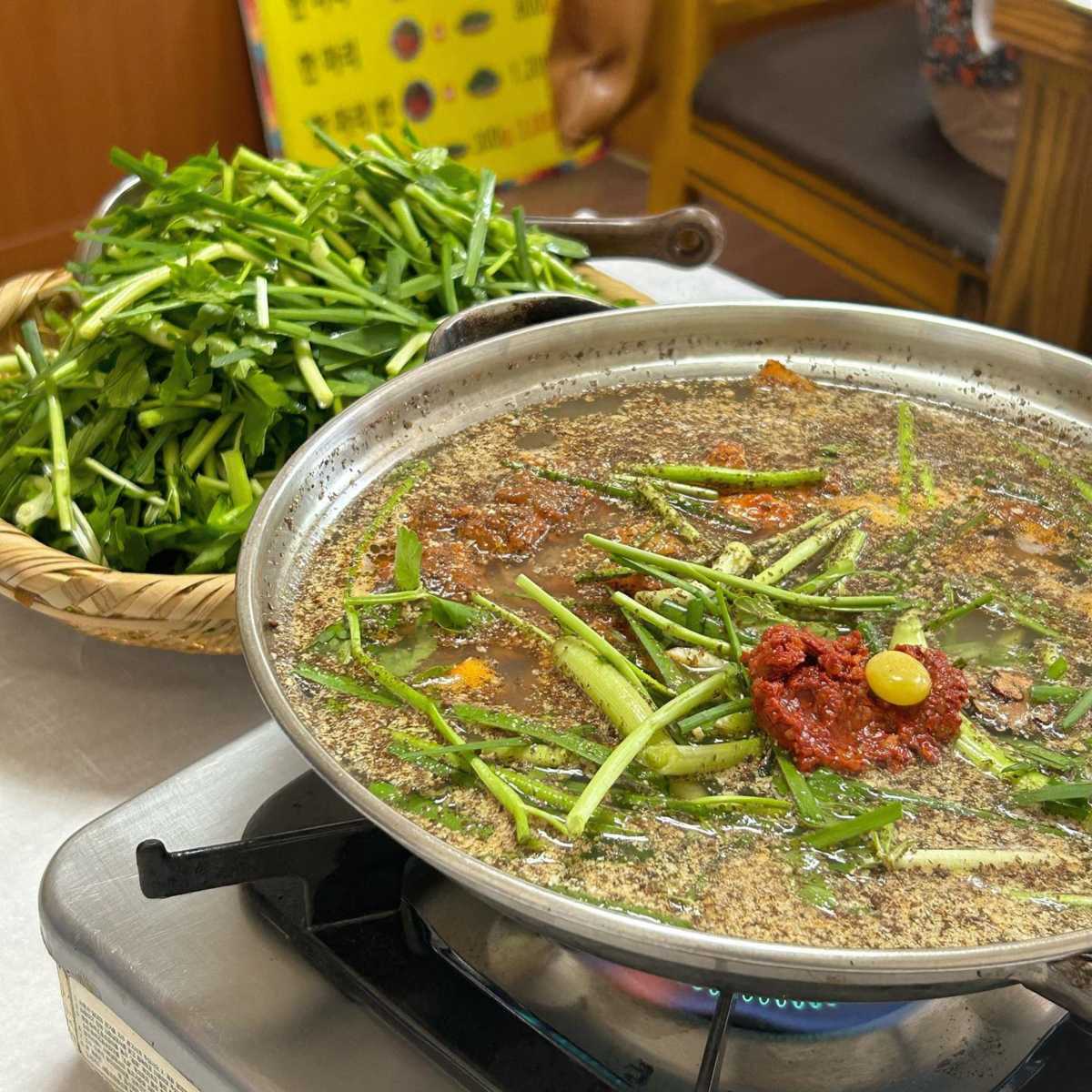 청둥오리 전골을 먹을 수 있는 담양 ‘유진정’. 조금 생소한 요리인 청둥오리 전골이지만 이미 담양에서는 몸보신하기 좋은 식당으로 입소문 난 집이란다. 빨갛게 양념이 된 청둥오리고기, 들깨가루가 들어간 냄비에 육수를 부어 테이블에서 끓여먹는 방식으로 끓으면 푸짐하게 준비되어 있는 미나리와 부추를 넣어 먹으면 된다. 양념이 되어있기 때문에 그냥 먹어도 좋지만 초장과 들깨가루를 섞어 양념을 만들어 찍어 먹으면 더욱 좋다. 양념에 쑥을 함께 넣어 볶아 내는 볶음밥도 일품으로 누룽지까지 먹으면 완벽한 한 끼를 먹을 수 있다.