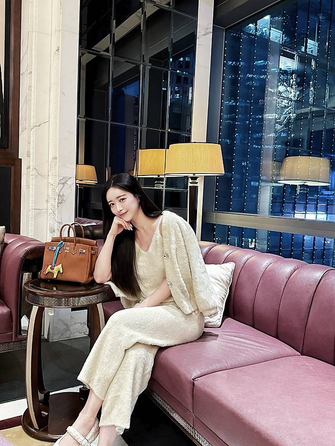 배우 홍수아가 화려한 도시의 야경이 내려다보이는 럭셔리한 호텔 라운지에서 마치 화보의 한 장면 같은 근황을 공개해 팬들의 찬사를 받고 있어요.