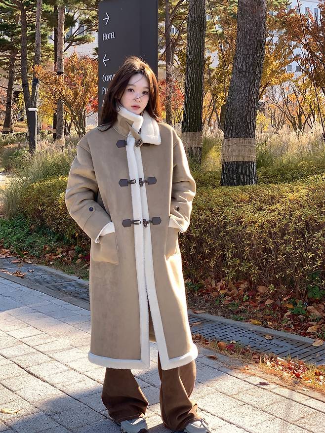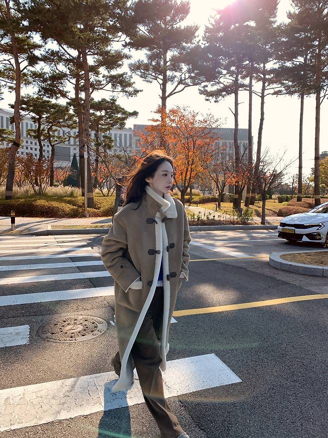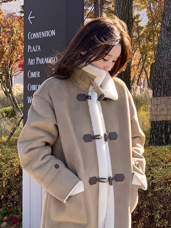 목선까지 감싸주는 하이넥 디자인과 토글 버튼 디테일은 그녀의 지적인 매력을 배가시키며 클래식한 겨울 패션의 정석을 보여주고 있죠.