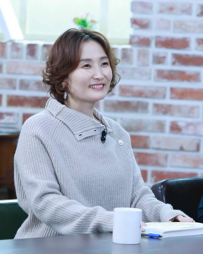 대본을 들고 환하게 웃고 있는 모습은 전문 방송인다운 여유와 신뢰감을 주며, 짧은 단발머리 스타일과 어우러져 한층 깔끔하고 정돈된 이미지를 완성하고 있어요.