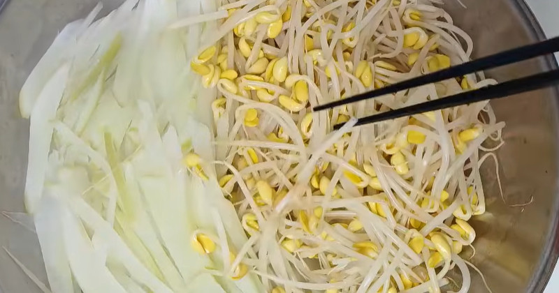 팬이나 냄비는 바닥이 두꺼운 것이 좋다. 처음 불은 약불에서 시작한다. 바닥에 기름을 아주 소량만 두른 뒤 무를 먼저 깔고, 그 위에 콩나물을 올린다. 이때 뒤섞지 않고 층을 유지하는 것이 포인트다. 무가 바닥에서 서서히 데워지며 수분을 내기 시작하면, 그 수증기가 위에 있는 콩나물을 부드럽게 익힌다.