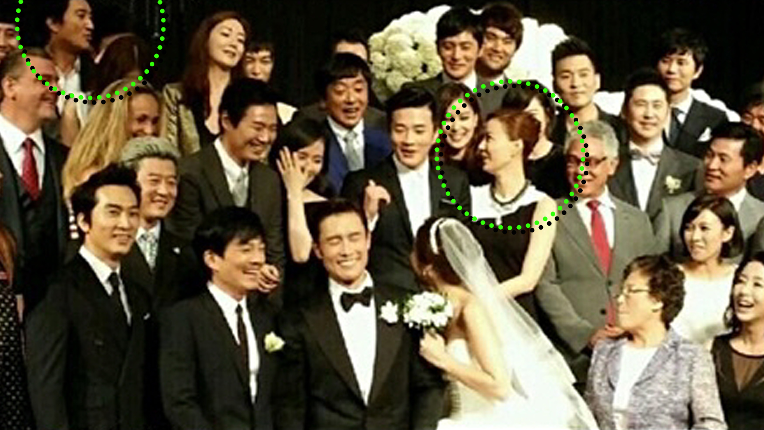 특히 하객 단체 사진 속 포착된 묘한 찰나가 눈길을 끈다. 대부분의 하객이 신랑과 신부를 응시하고 있는 것과 달리, 신현준과 손태영은 마치 서로를 향해 시선을 두고 있는 듯한 모습이 카메라에 담겼기 때문이다. 실제로는 각자 뒤편에 위치한 다른 연예인 하객을 쳐다보는 상황이었으나, 교묘한 각도와 타이밍이 겹치며 오해를 불러일으킨 장면이었다.