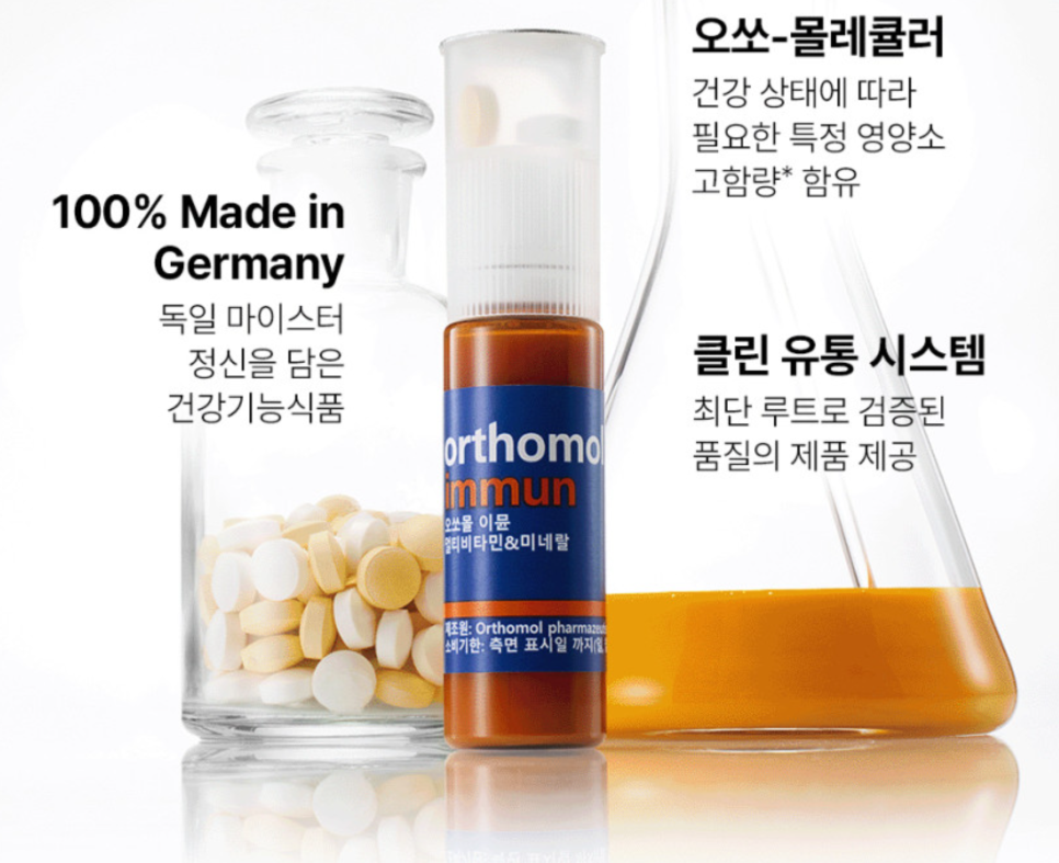이 제품은 독일 건강기능식품 브랜드 오쏘몰에서 나온 프리미엄 멀티비타민 라인입니다. 액상 앰플 + 정제 타입으로 나뉘어 있어 흡수 설계를 고려한 점이 특징이에요.