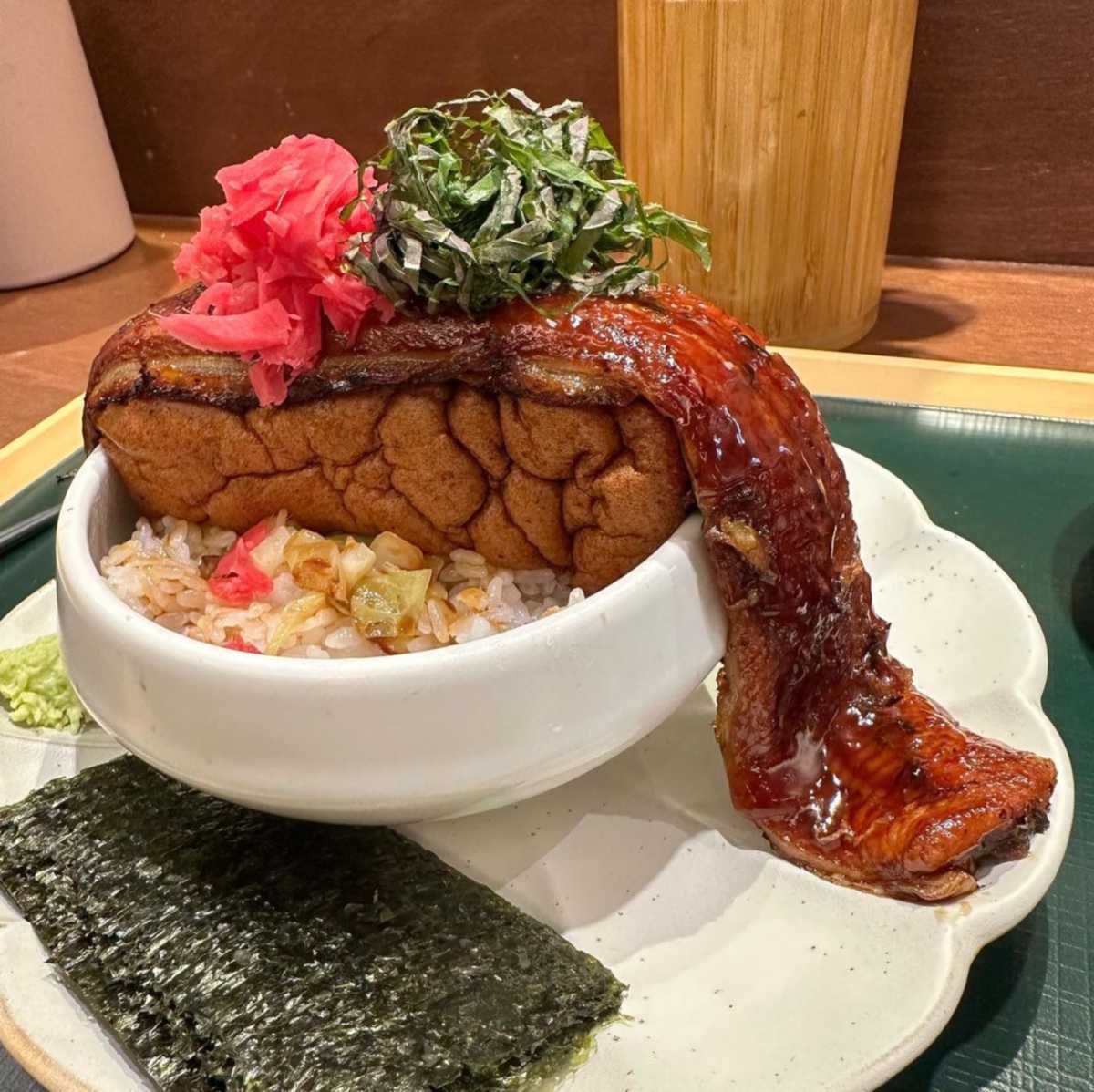 신선한 고급 해산물과 투뿔 한우에 짚불향을 은은하게 입혀 다양한 음식을 제공하는 덮밥집 서울 ‘훈연’. 그릇을 전부다 덮을 만큼 큼지막한 민물장어가 한 마리 통째로 올라간 우나기동을 맛볼 수 있다. 두툼한 살이 부드럽게 녹아드는 장어는 적당한 크기로 잘라 취향에 따라 깻잎이나 생강, 와사비 등을 곁들이고 김에 싸 먹으면 더욱 맛있게 먹을 수 있다.