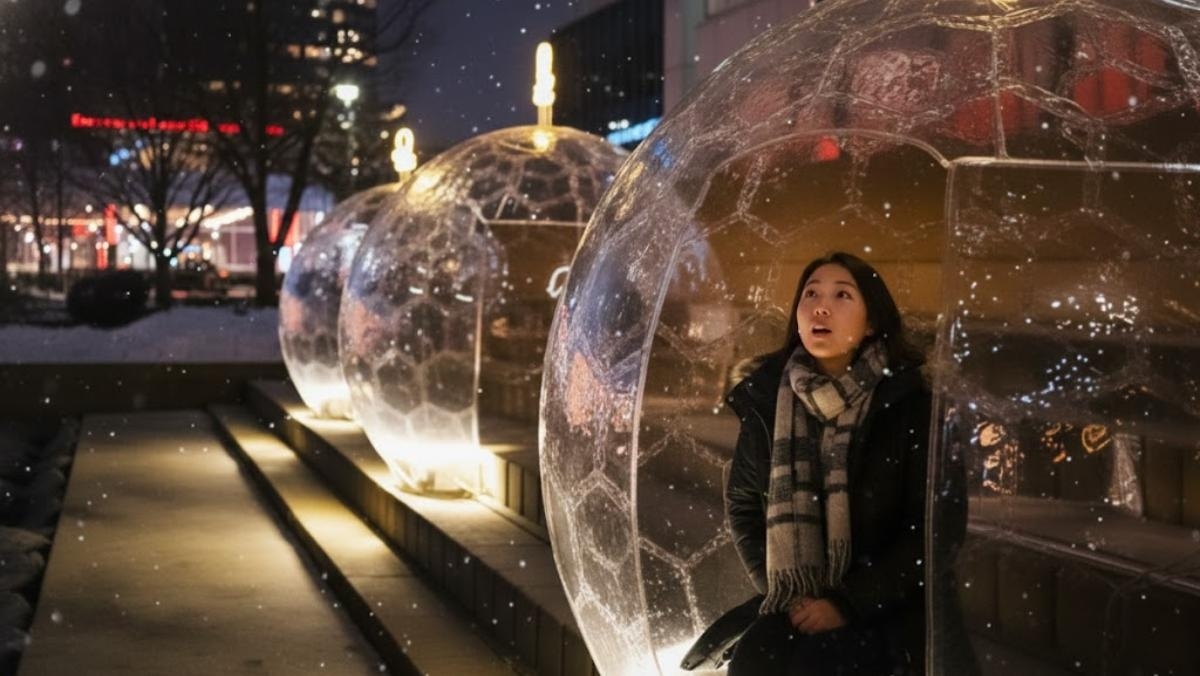 경기 시흥시에 위치한 인공섬에 투명 이글루가 설치돼 관광객들의 눈길을 끌고 있다.