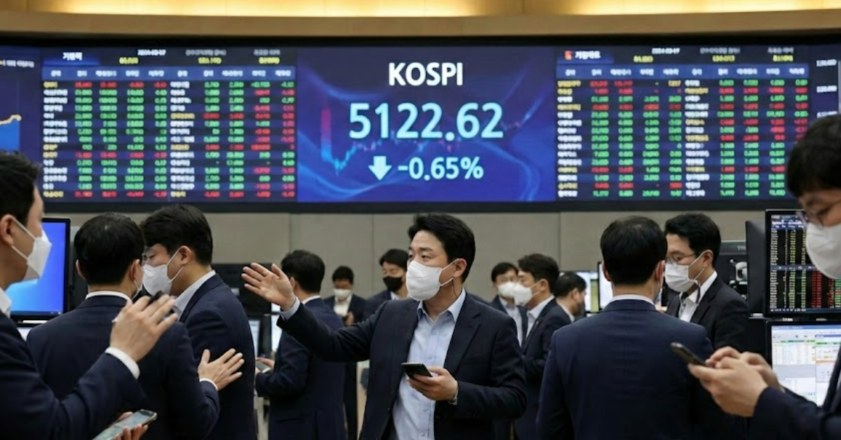코스피 지수는 오전 9시 기준 전 거래일 대비 103.19포인트 하락한 5121.17을 기록 중이다. 하락률은 -1.98%로 집계됐다. 이날 시장은 시가 5122.62로 문을 열었으나 개장 직후 매도 물량이 쏟아지며 시가 대비 소폭 하락한 구간에서 거래가 이뤄지고 있다. 현재 지수 위치는 전 거래일 종가 기준 형성된 5232.00 선의 저항을 받으며 하방으로 방향을 튼 모습이다.