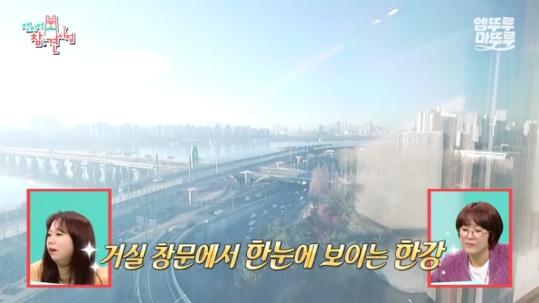 거실에서 시원하게 보이는 한강 뷰랑