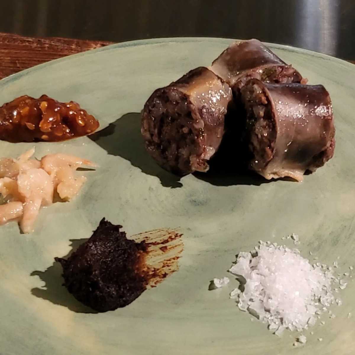 실향민 할머니의 손맛을 기억하여 구연한 순대 오마카세 서울 마포 ‘리북방’. 샐러드와 편육 등 입맛을 돋우는 에피타이저를 시작으로 다양한 순대를 맛볼 수 있다. 전통적인 조합인 야채 피순대와 백순대, 아바이 순대를 비롯해 이북식으로는 거위를 넣어 만드는 순대지만 오리로 재해석한 오리 순대, 쯔란을 뿌린 양순대까지 새로운 재료로 재해석한 순대까지 맛볼 수 있다. 각각의 순대에 곁들여 먹을 수 있는 말돈 솔트, 까막장, 육젓, 쌈장까지 소스도 다양하게 준비되어 있다.