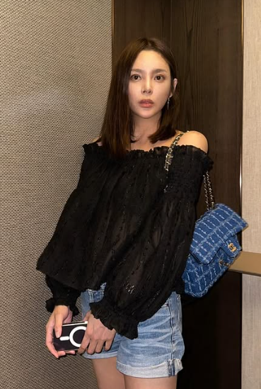또 다른 사진 속에서 박시연 씨는 블랙 오프숄더 톱에 데님 쇼츠를 매치하여 자신만의 감각적인 패션 스타일을 선보였습니다. 자칫 평범해 보일 수 있는 조합임에도 불구하고, 그녀 특유의 길쭉한 실루엣과 뚜렷한 존재감이 더해져 마치 화보의 한 장면 같은 분위기를 연출했습니다. 과한 액세서리나 화려한 메이크업 없이도 담담한 표정 하나만으로 화면을 꽉 채우는 아우라는 그녀가 왜 한때 시대를 풍미했던 뷰티 아이콘이었는지를 다시금 증명해 주었습니다.